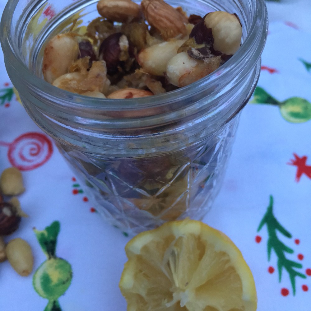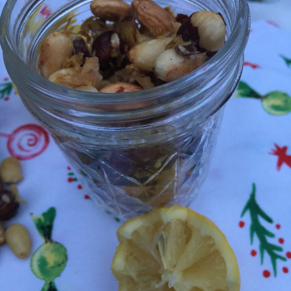 🍋Backblech mit Backpapier auslegen und die Nuss- Mischung gleichmässig auf das Backblech verteilen und die Nüsse so lange bei 180 Grad im Backofen rösten, bis sie schön braun sind.