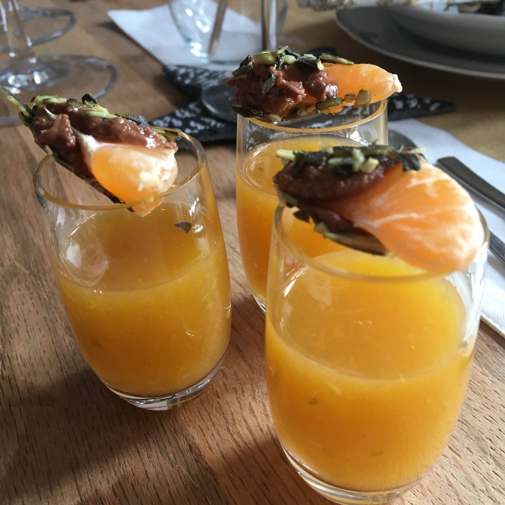 🍊Die Mandarinen mit einem Sparschäler dünn abschälen, dann die Früchte halbieren und auspressen.