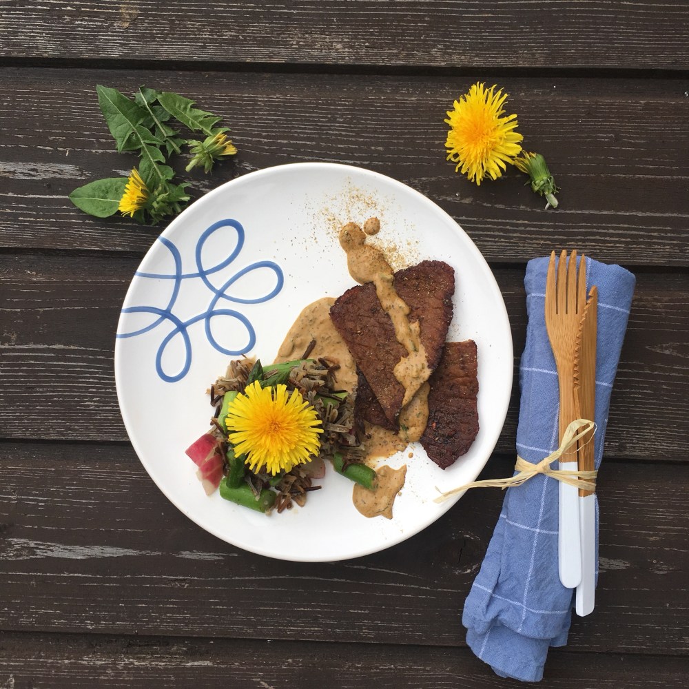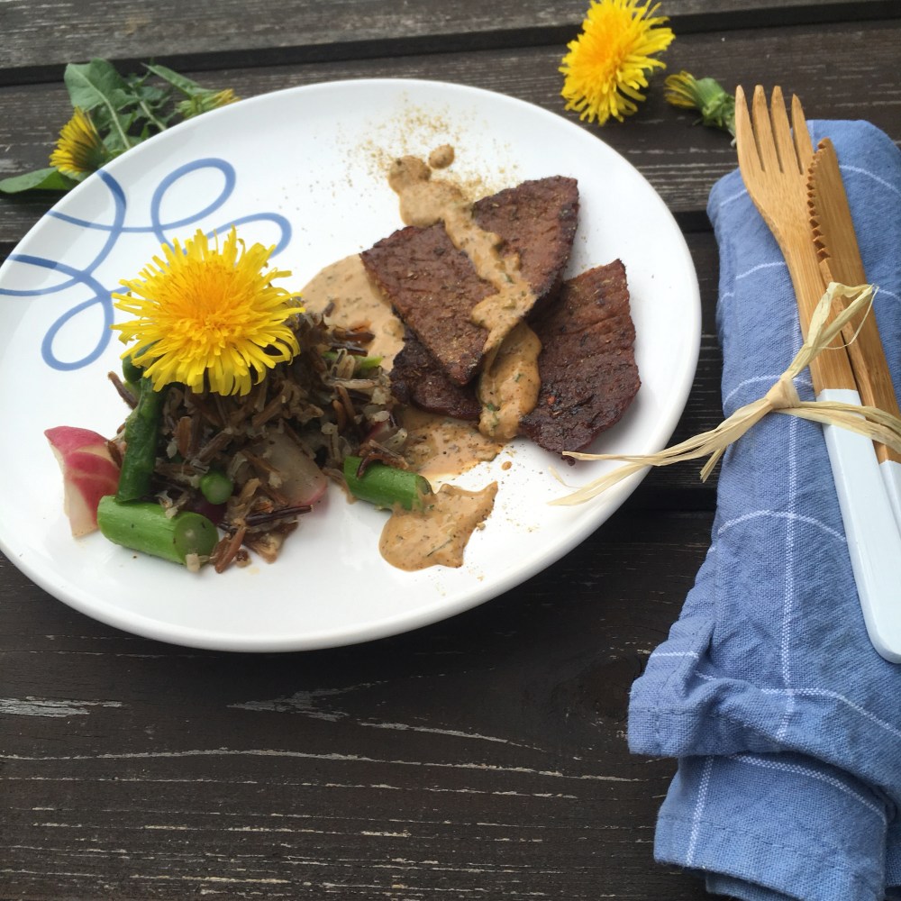 💛Würze und mariniere die Rindsschnitzerl mit Frankie’s Barbecuegewürz und brate sie in einer Pfanne scharf an.
