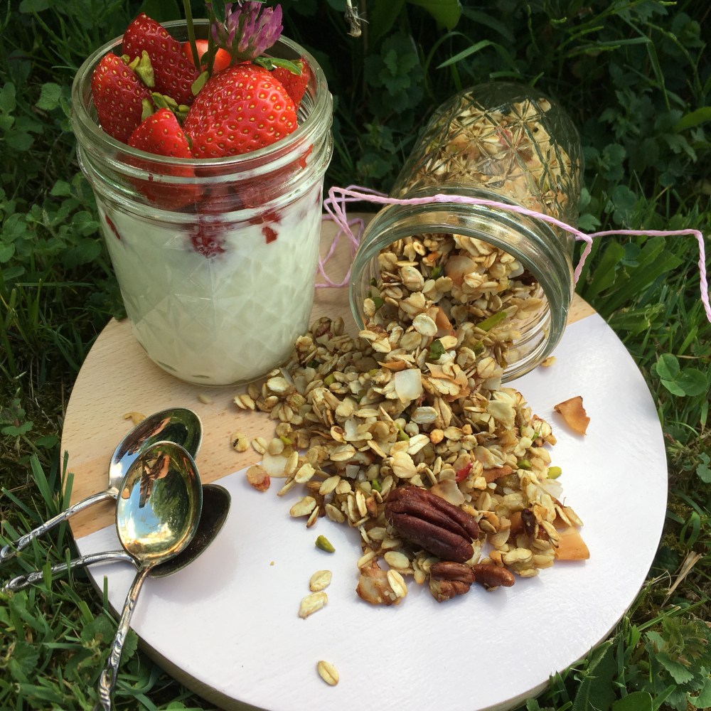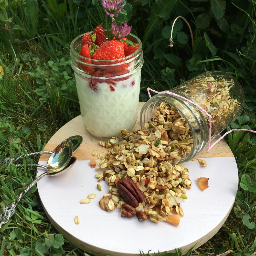 Einem leckeren Müsli/Granola das du mit viel Liebe zubereitet hast und das du schön verpackt im Glas deiner Mama schenkst?