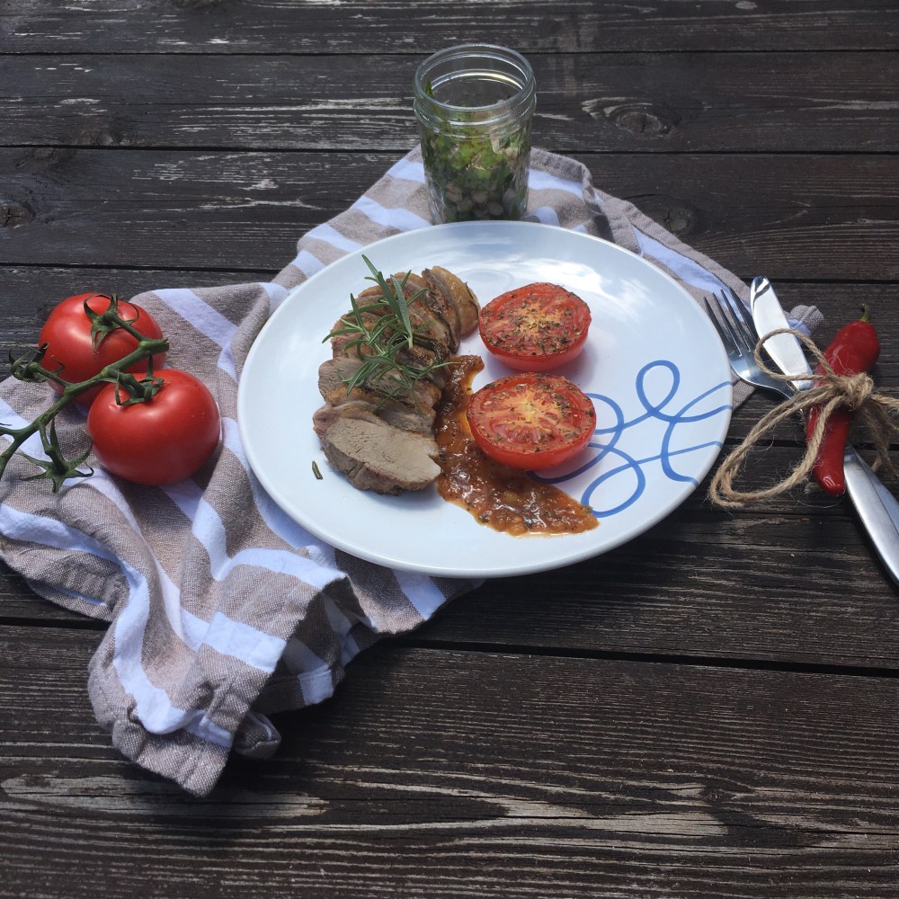 Dazu lecker gegrillte Tomaten, und eine Ananas /Barbecue Sauce- einfach sowas von lecker😋😋😋
