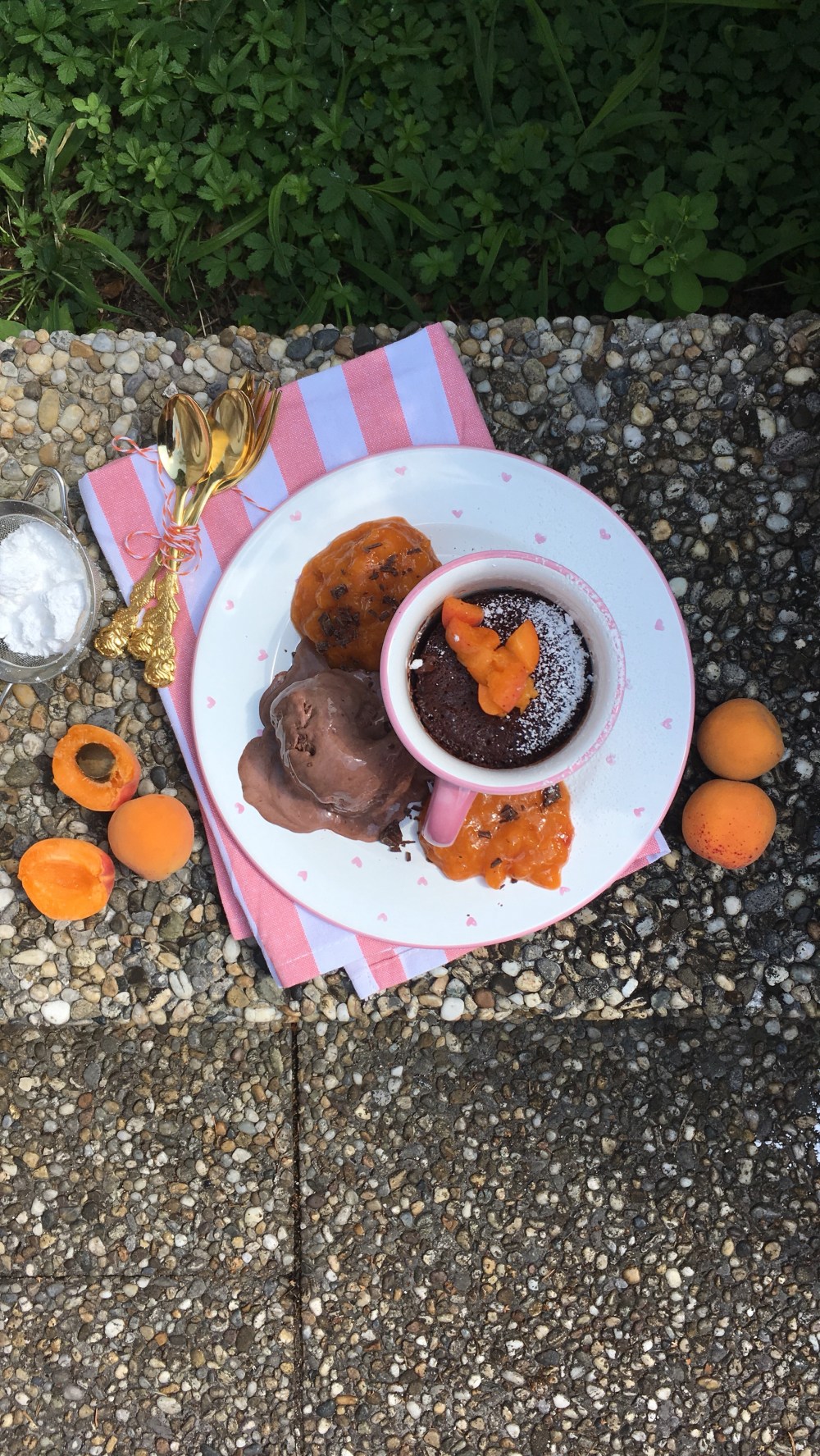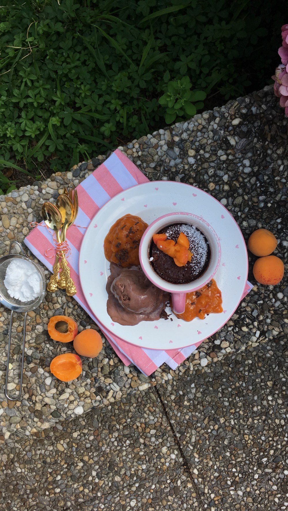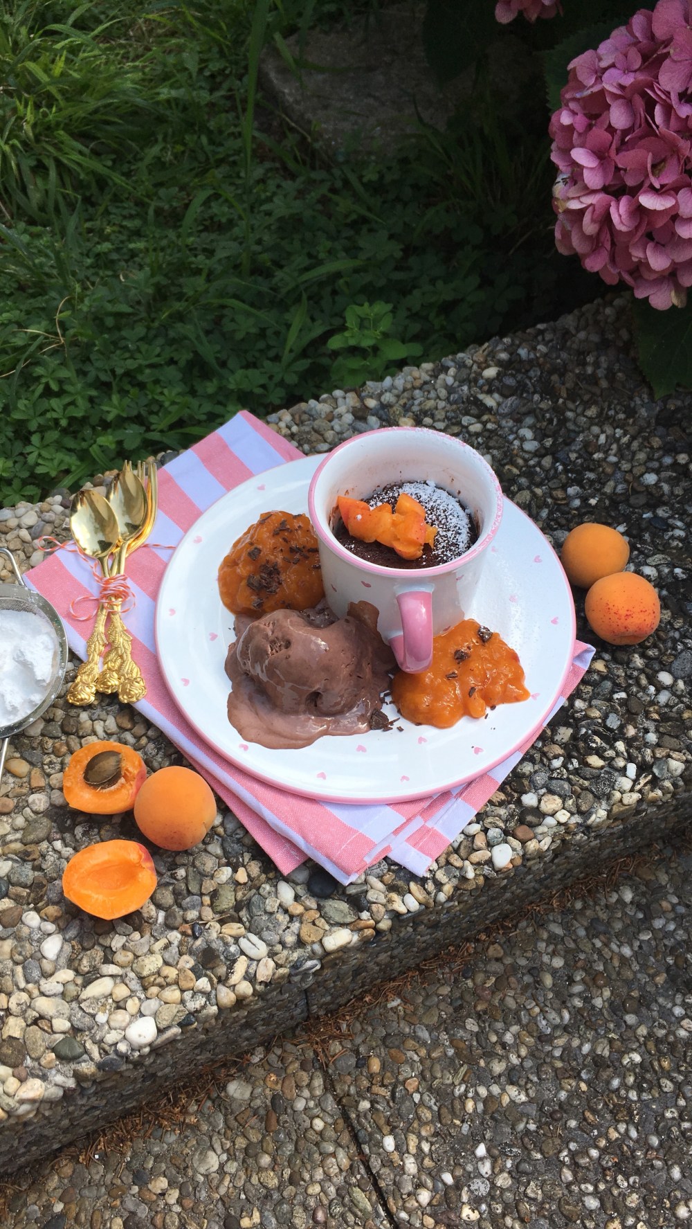 Was gibt’s da besseres als leckeres Eis mit fruchtigem Marillenmus und Schokoküchlein dazu?🍫🔆🍑
