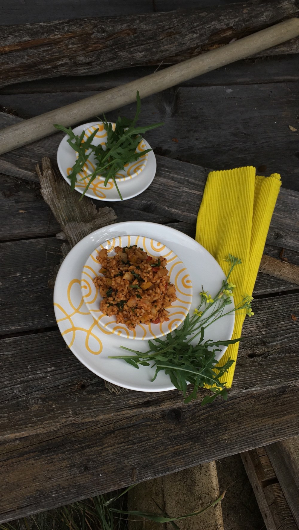 🌞Auch das Gemüse & den Rucola klein schneiden.