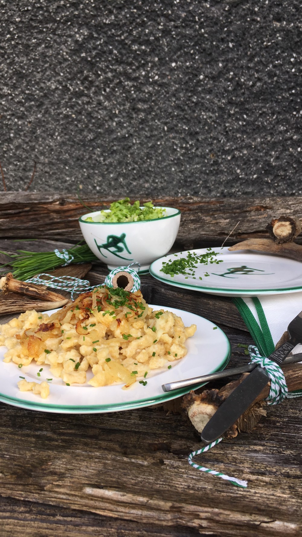 🧀Die Zwiebelringe goldbraun im Butter braten und mit dem Schnittlauch die Spätzle servieren.🙌🏻😋