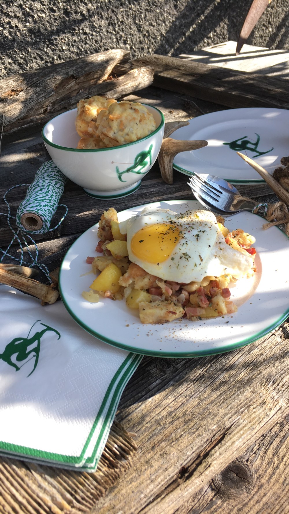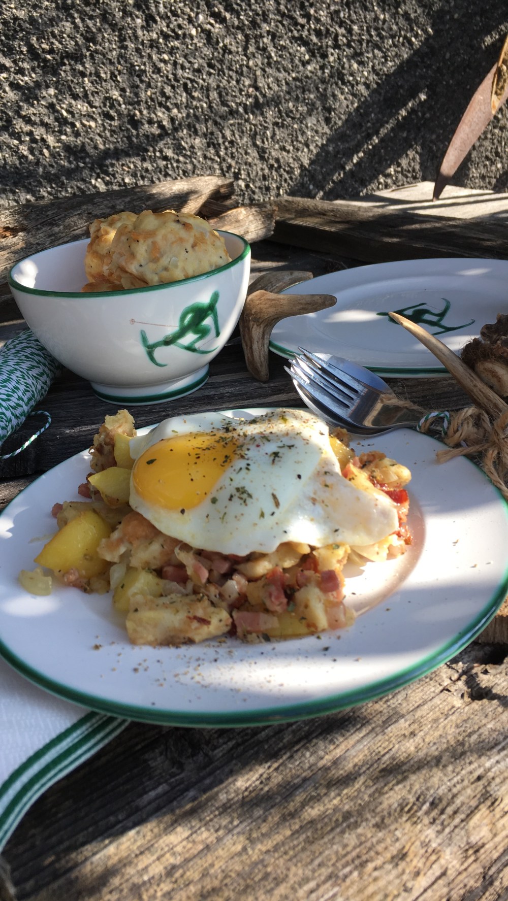 🍳Richte das Gröst’l an und gib darauf die Spiegeleier🤗