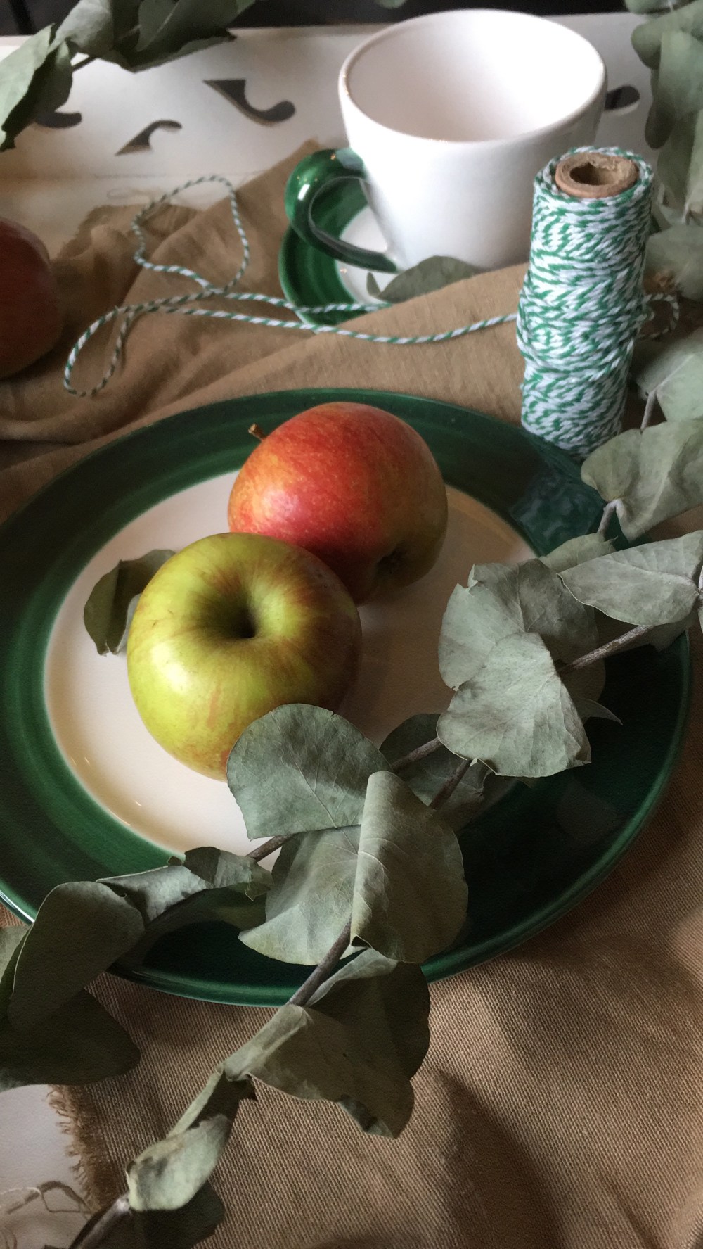 🍎Streu am Rand Brösel hin und gib ihn die Mitte deine Äpfel. Gib darauf ein paar Tupfen Sauerrahm.