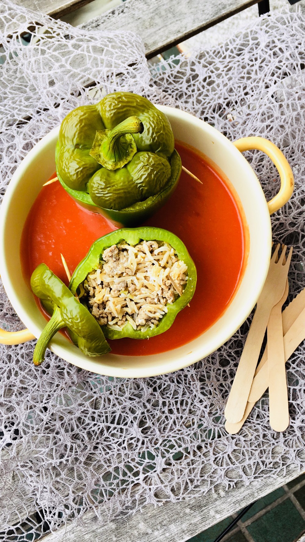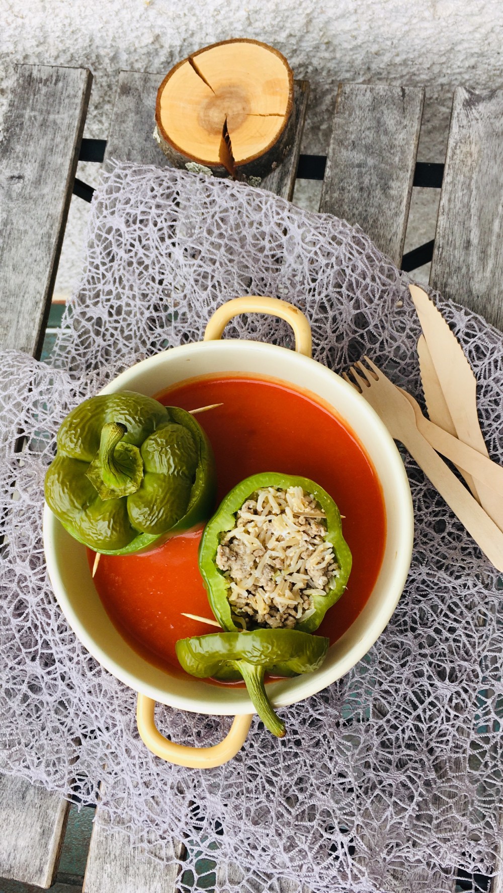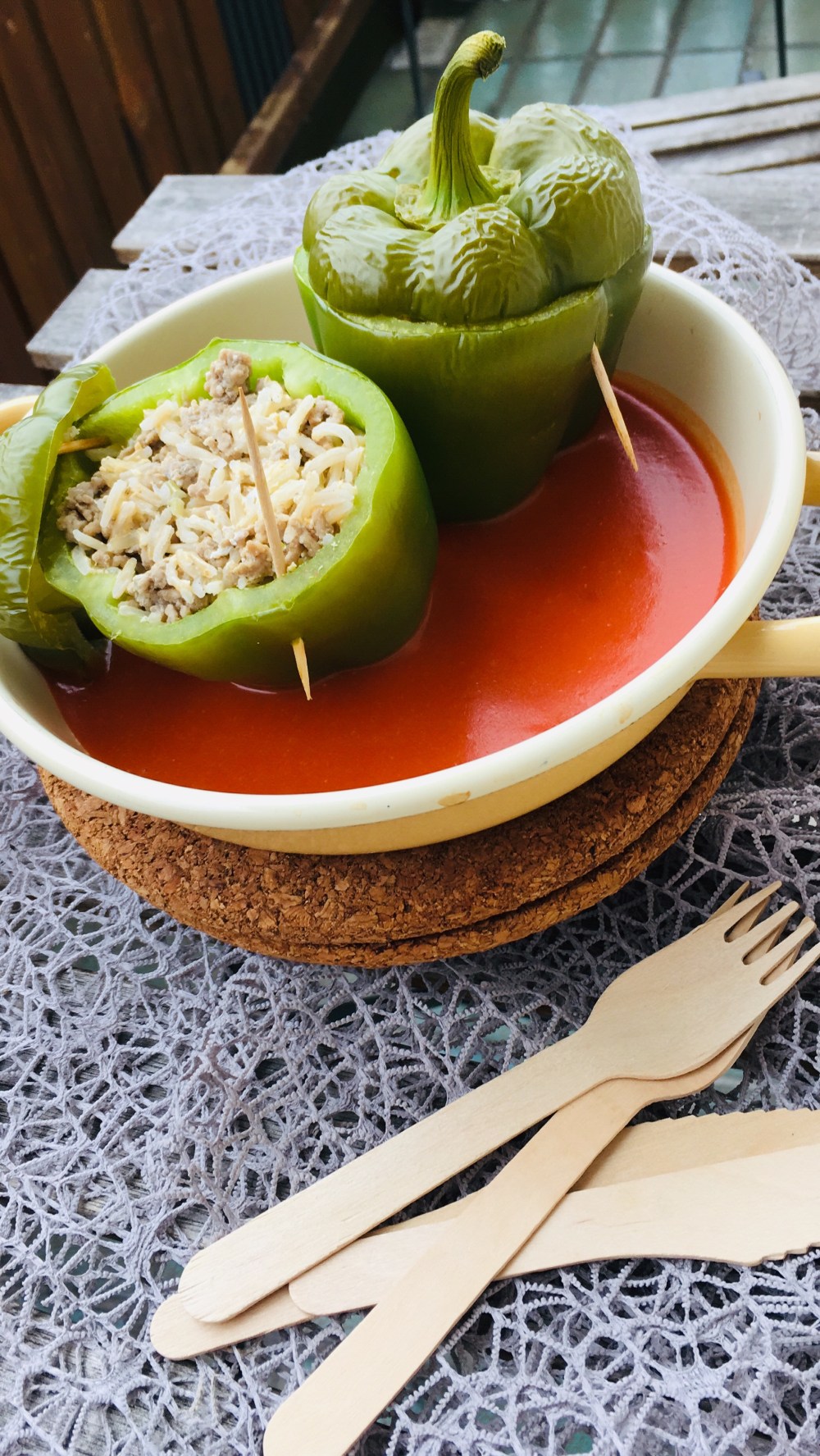 🍴Schneide den Deckel der Paprika ab und höhle sie aus.