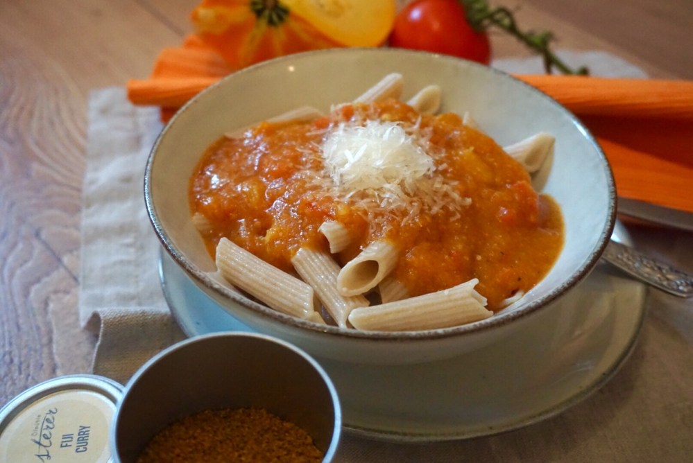 Und da hab ich Zeit euch das Rezept meiner leckeren Reispasta mit Tonaten / Kürbissauce zu schreiben😊