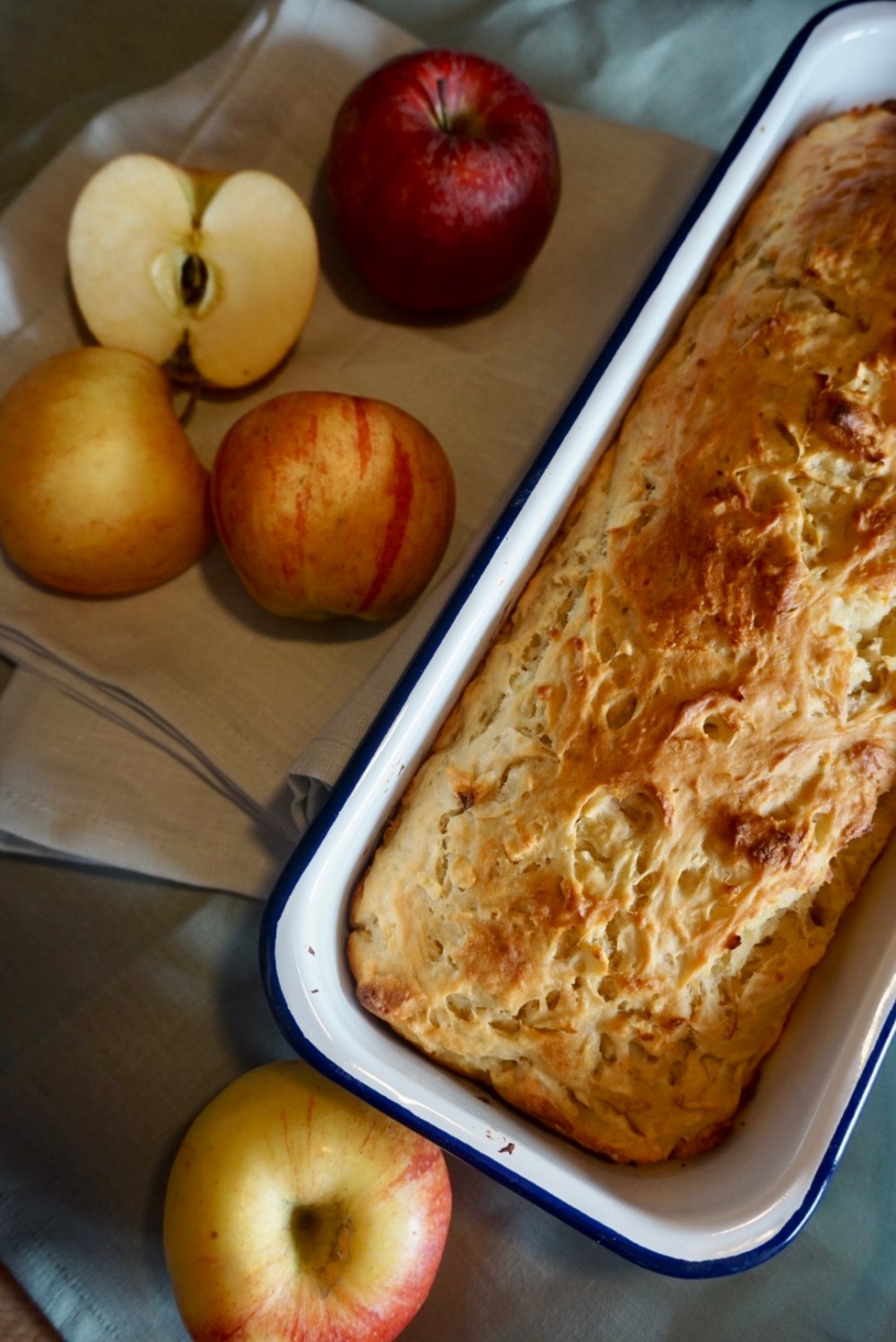 🍎Den Teig in eine befettete Kasten/Emailleform geben und ca.18 Minuten backen bis es schön goldbraun ist.