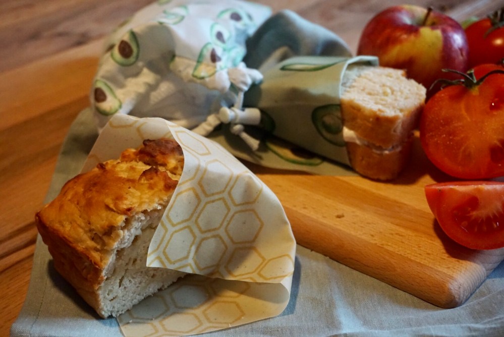 Und ‚To Go‘ gibt’s gerade Tolle Bienenwachstücher , zum Mitnehmen für dein Brot:)