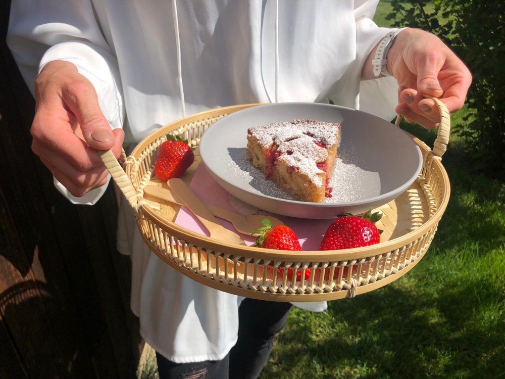 Wir genießen dann draußen leckeren Erdbeer Rhabarber Kuchen- und da gibt’s heute ein tolles Rezept für Euch😍