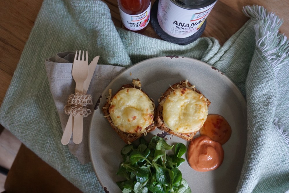 🌴Serviere den Toast Hawaii mit deiner Cocktailsauce & der Süss Sauer Sauce. Und gib dazu einen Salat:)