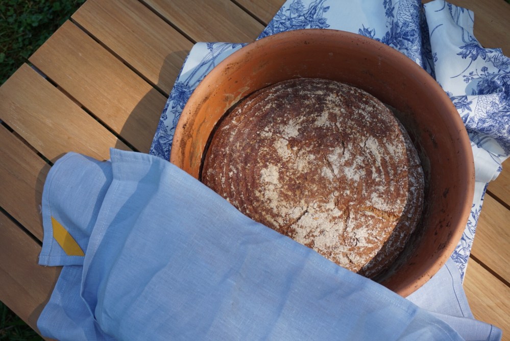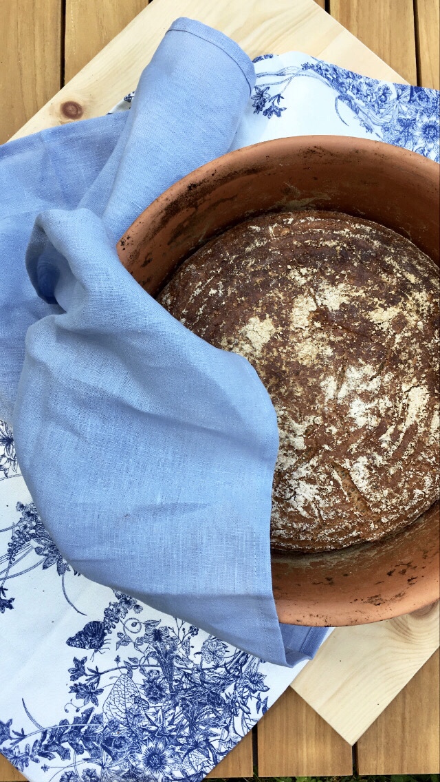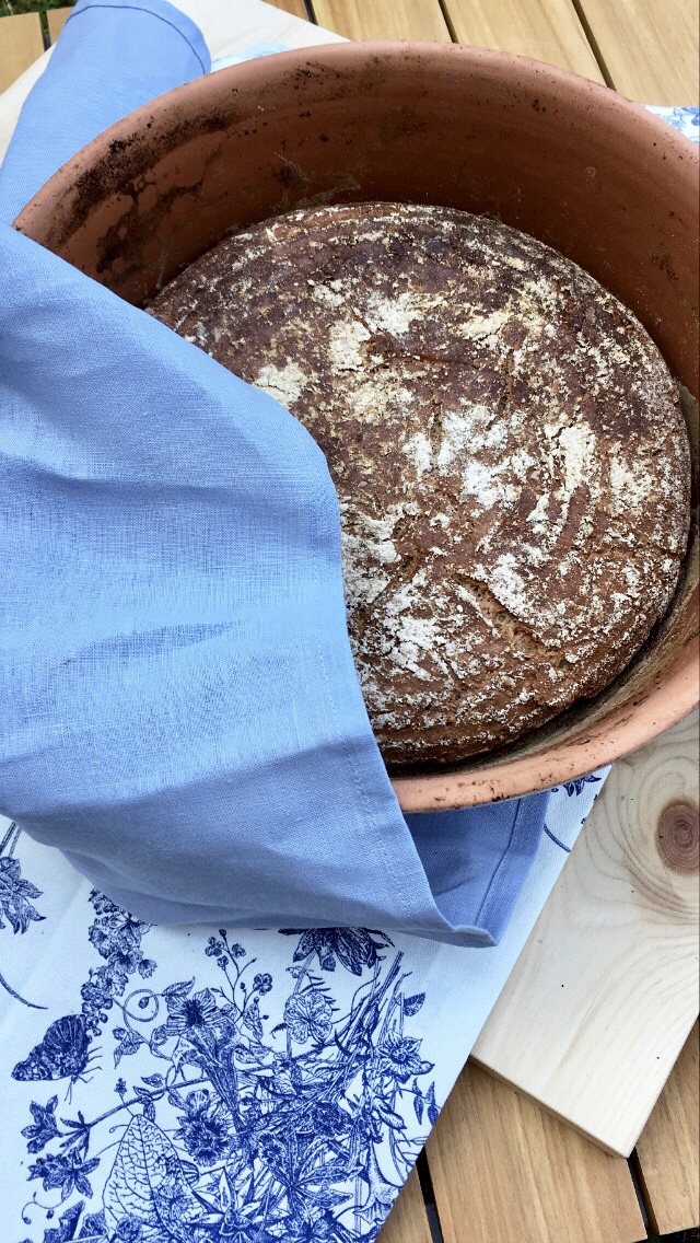 🥖Lege dein Brot in den Römertopf, bemehle es noch ein bisschen und backe es im kalten Backofen bei 230 Grad Ober-/Unterhitze ca.60 Minuten.