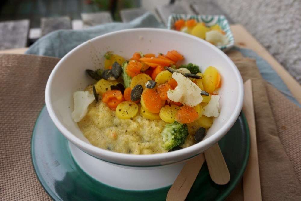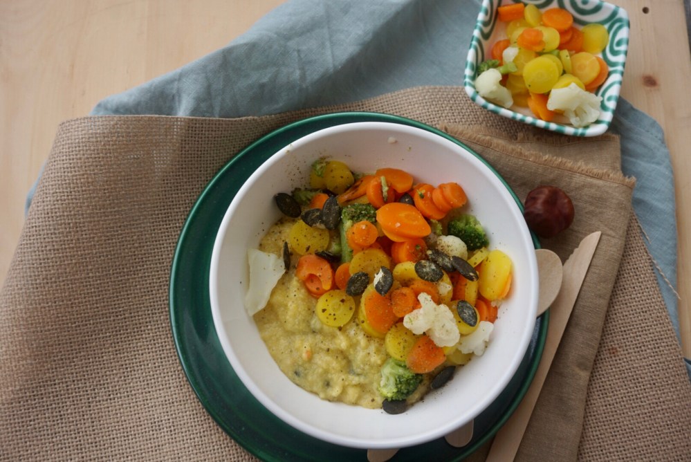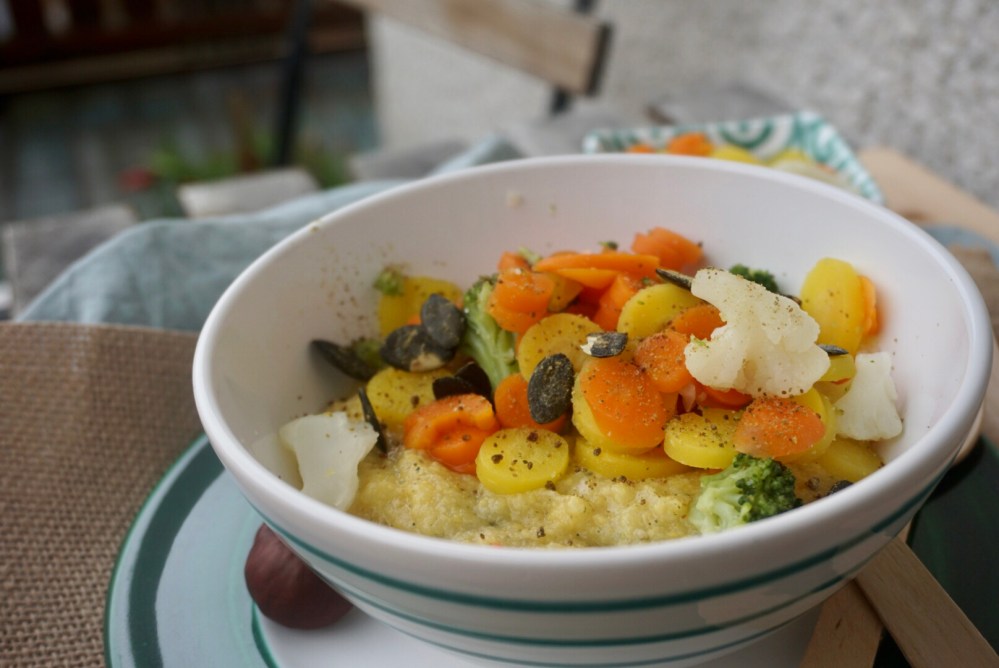 💚Wenn dies fertig ist, kannst du deine Polenta abschmecken mit Salz, Pfeffer, Parmesan ev.Öl , Kürbiskernen….