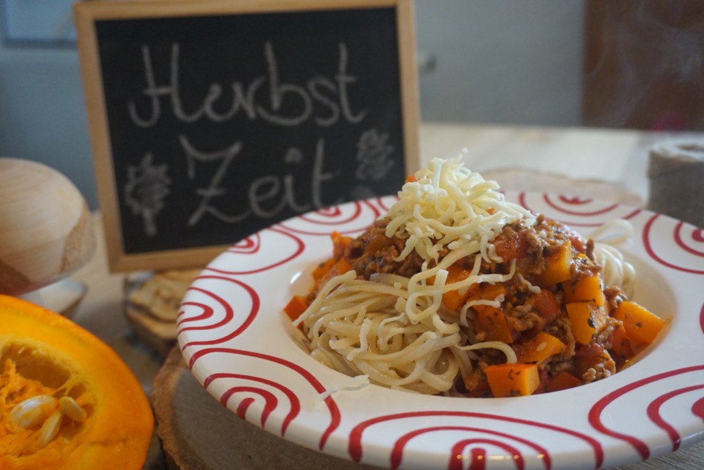Es gibt Spaghetti Bolognese mit Kürbis, herbstlicher gehts wohl kaum🤗
