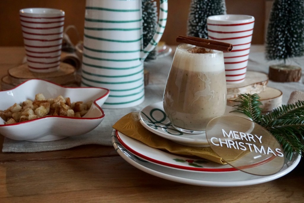 Meine Vorspeise ist eine Maronischaumsuppe mit Weisswein & Zimt Beotcroutons