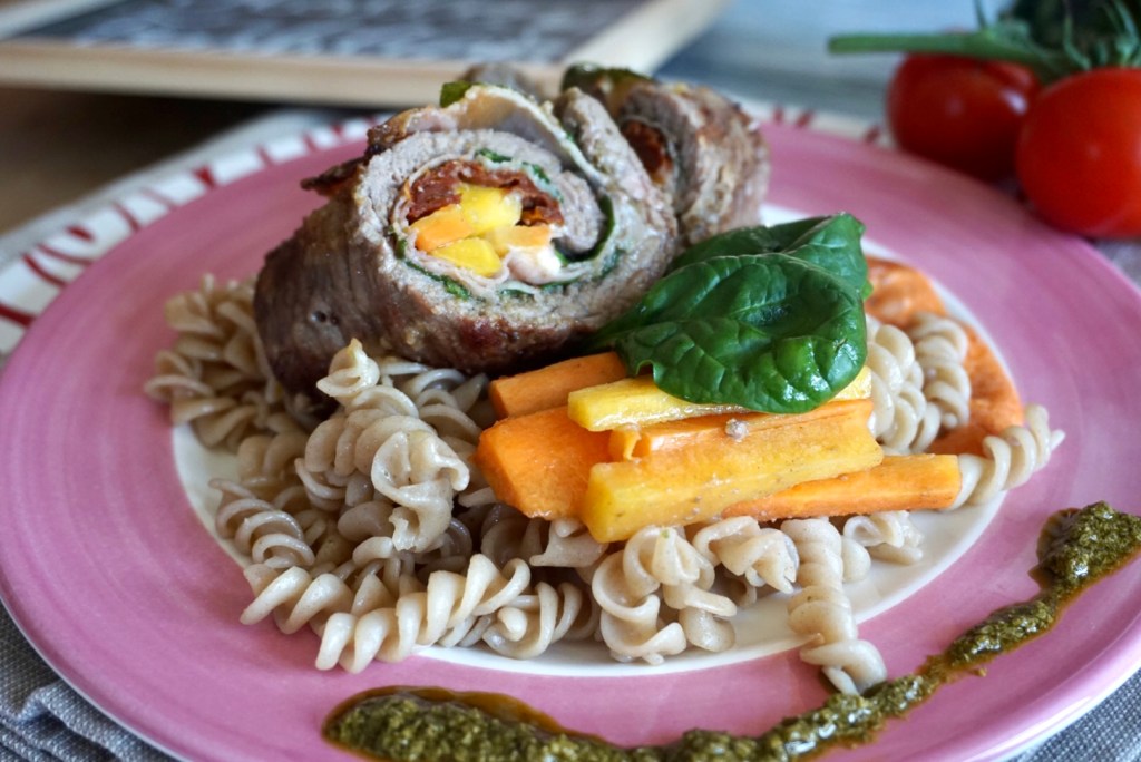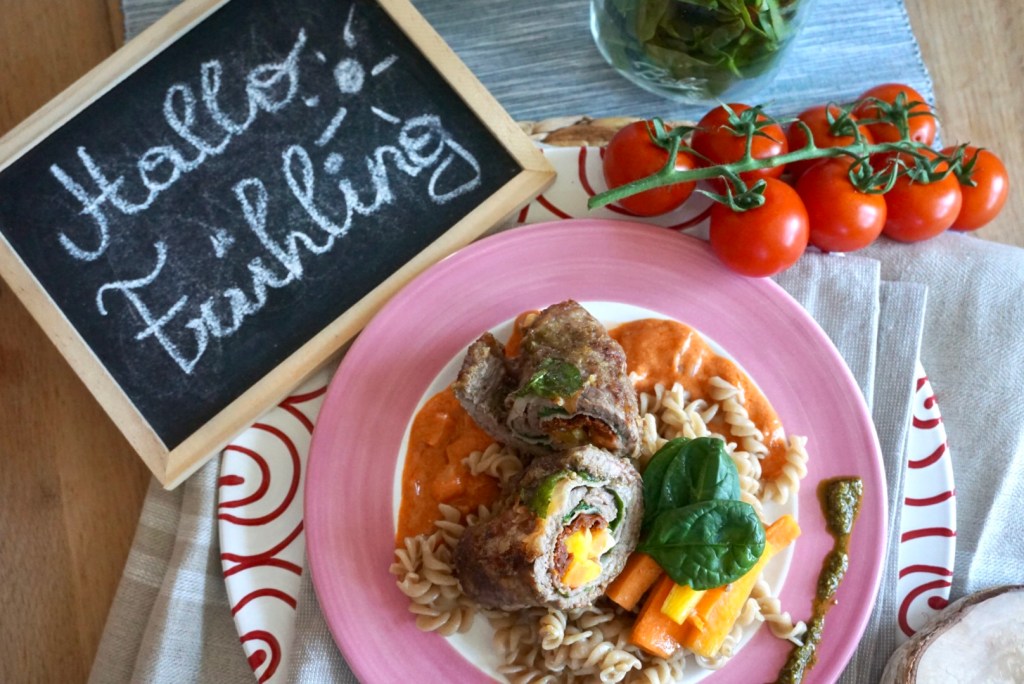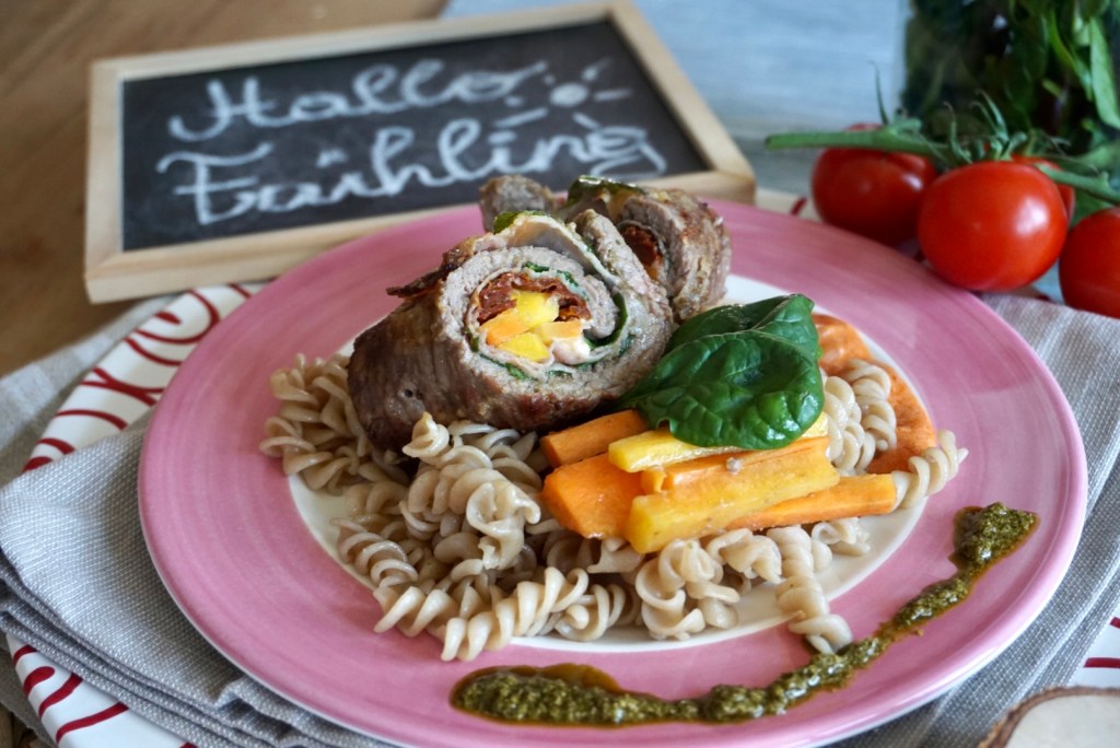 Rindsroulade Frühlingshaft gefüllt mit Pedto und Roggenspiralen💚