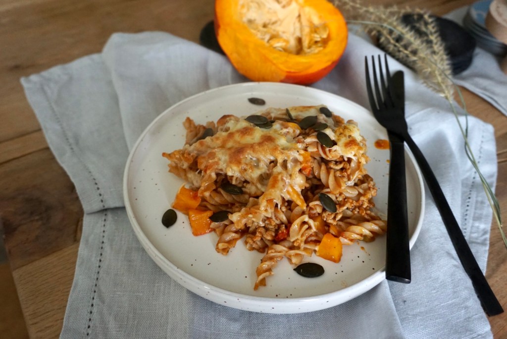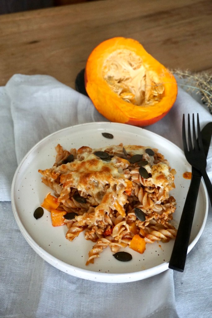 Kürbis Nudelauflauf mit Faschiertem🍂